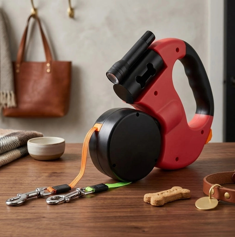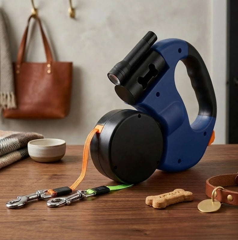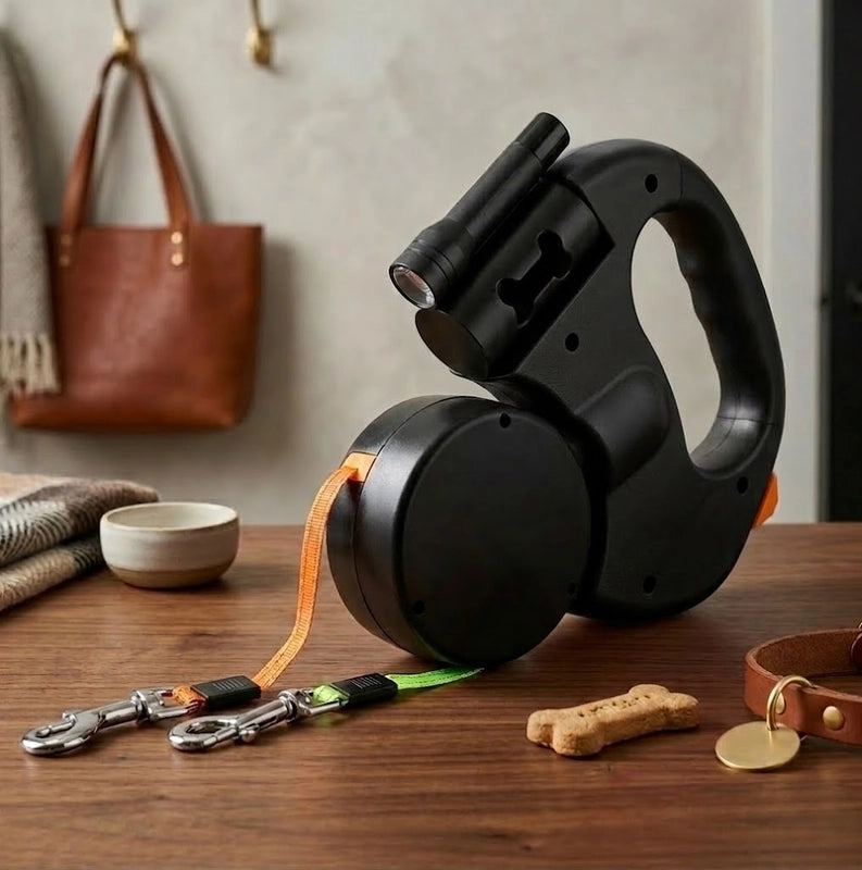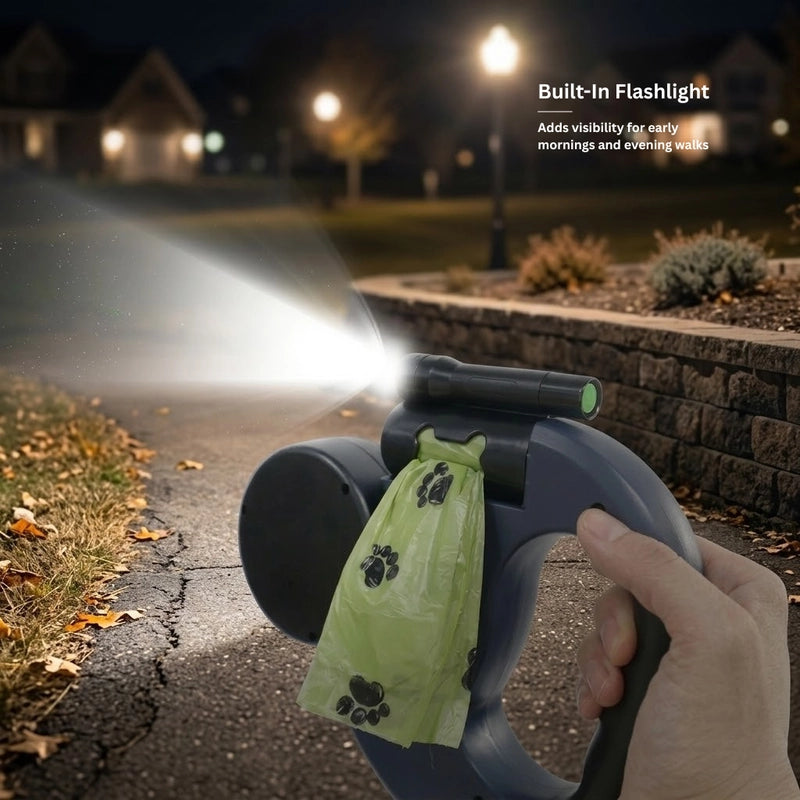 Dual Anti-Tangle Retractable Dog Leash with Light & Bag Dispenser